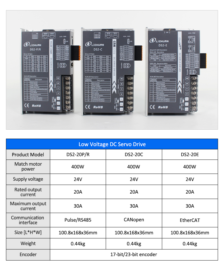 New products Pulse/RS485/CANopen/EtherCAT 60 FLANGED 400W 17/23-Bit Incremental/Absolute Encoder Low Voltage DC Servo Motor Drivers Kit made in China with CE/ROHS from LICHUAN®. Our factory is a famous Pulse/RS485/CANopen/EtherCAT 60 FLANGED 400W Low Voltage DC Servo Motor Drivers Kit manufacturers and suppliers in China. Our product is high quality/durable/stable operation and cheap price. And we provide customized services.